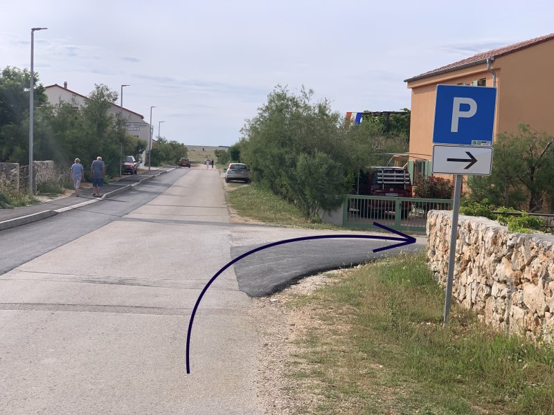 Opusťte dálnici A1 sjezdem POSEDARJE, pokražujete směr RAŽANAC, PAG